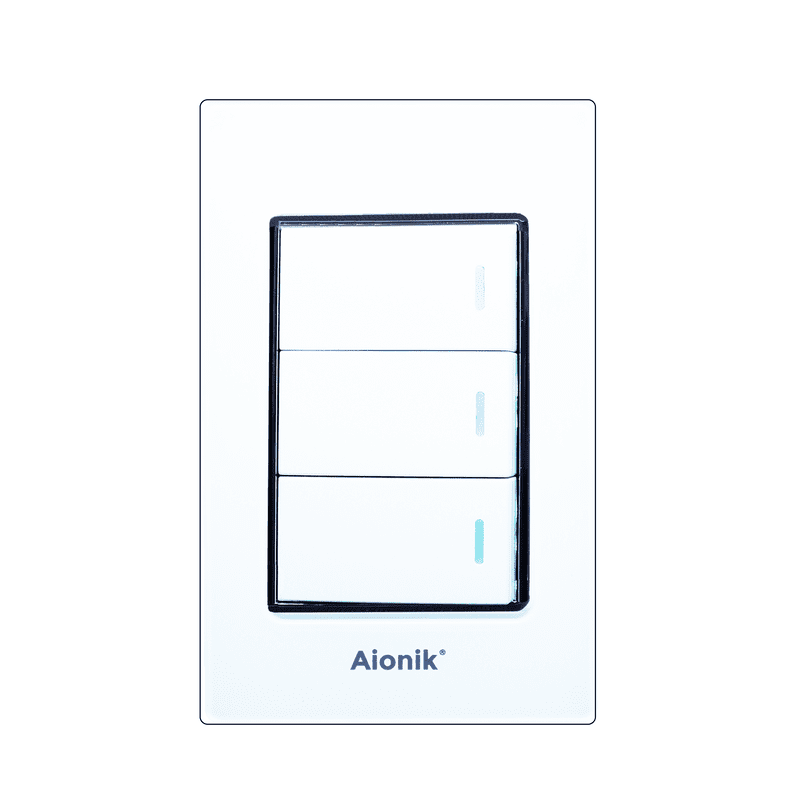 Placa acrilico con 1 apagador sencillo y 2 apagadores escalera blanco con marco cromado APB016 Aionik 10